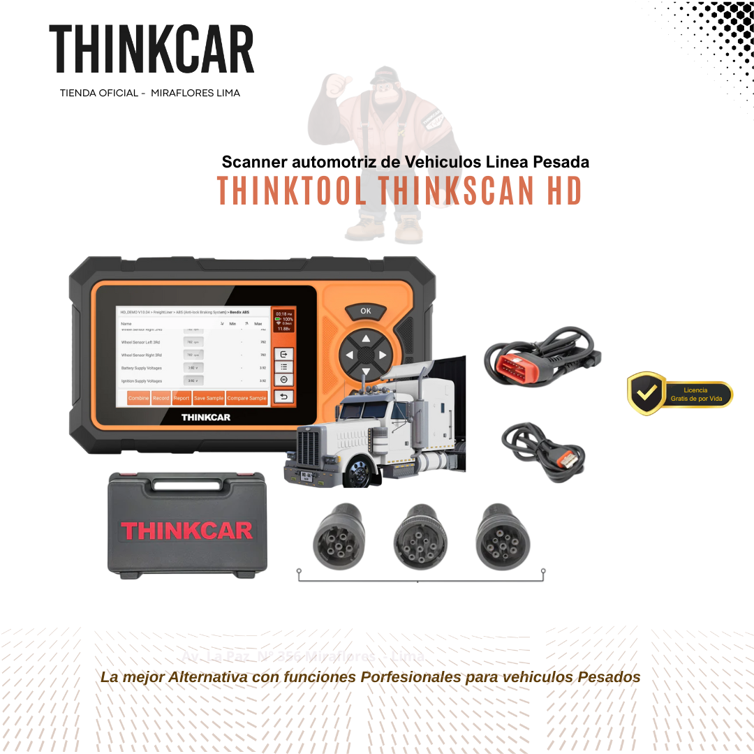 THINKSCAN HD es un escáner de nivel profesional diseñado para 31 marcas de vehículos comerciales, camiones de servicio pesado y camiones de servicio mediano.