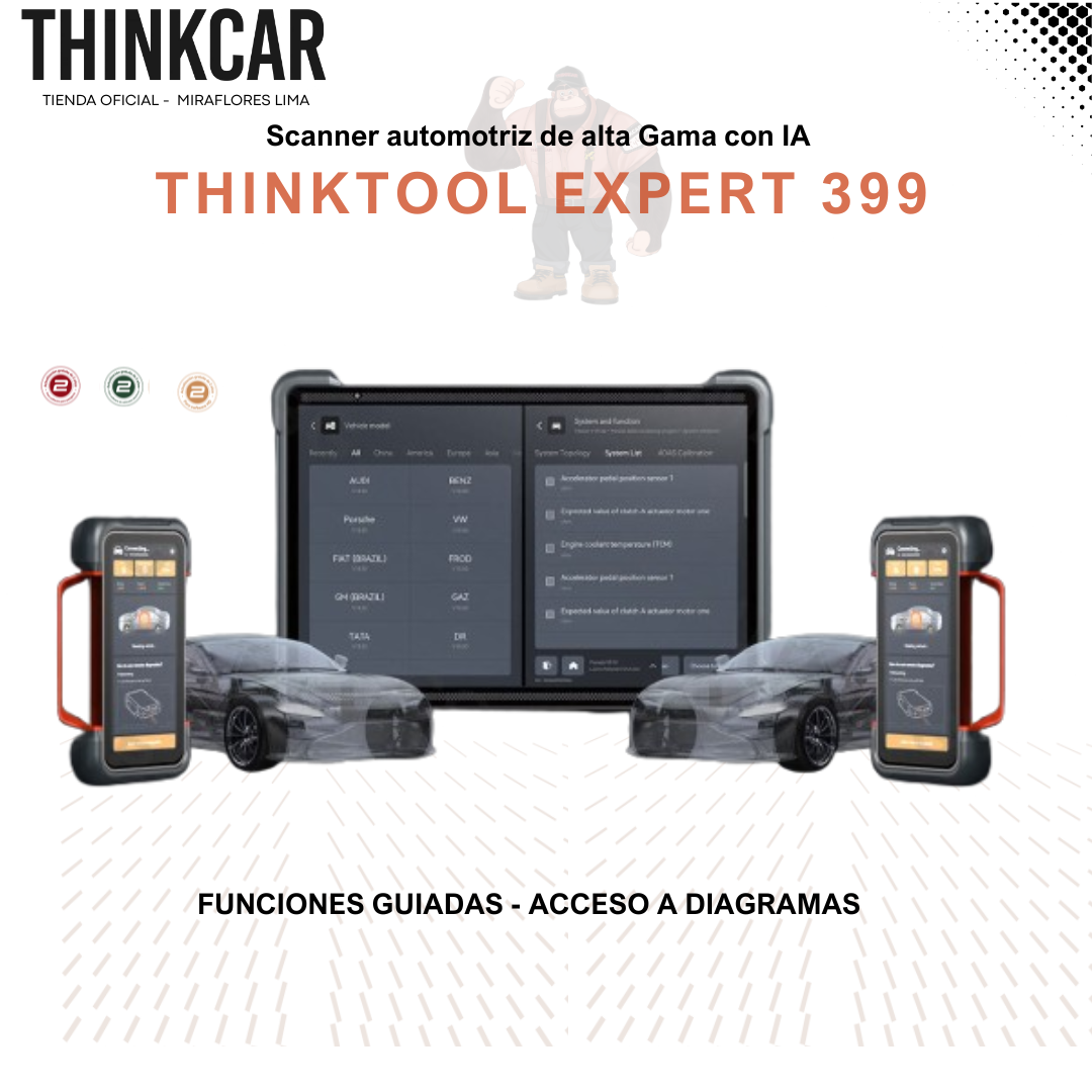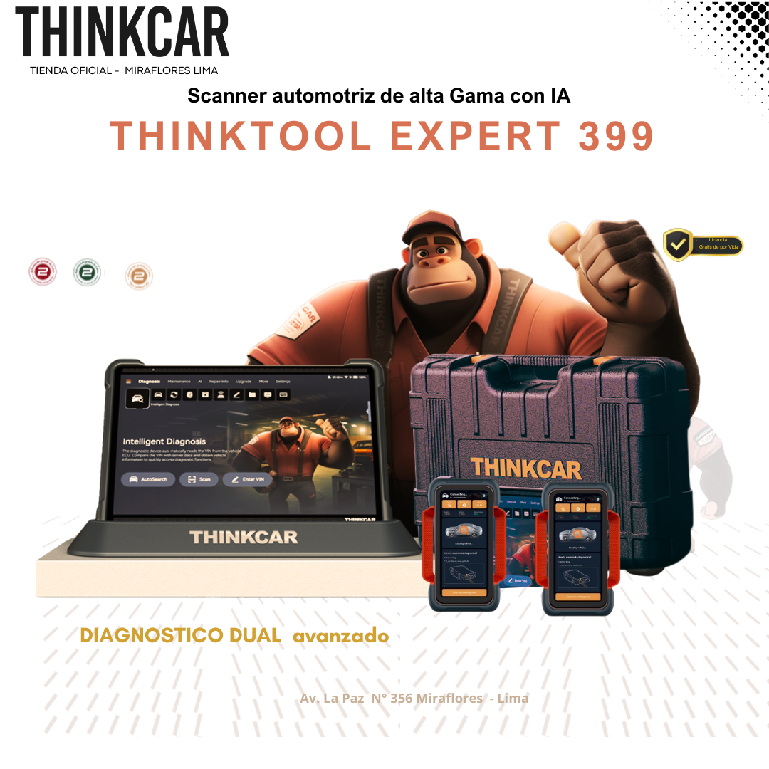 El Thinktool Expert 399 es el scanner automotriz profesional más avanzado de Thinkcar, diseñado para diagnósticos rápidos, precisos y completos en vehículos gasolina, diésel, híbridos, eléctricos y comerciales pesados. Con pantalla de 14 pulgadas, inteligencia artificial y diagnóstico dual RTC, este equipo está pensado para talleres que necesitan máxima cobertura y potencia en un solo dispositivo.